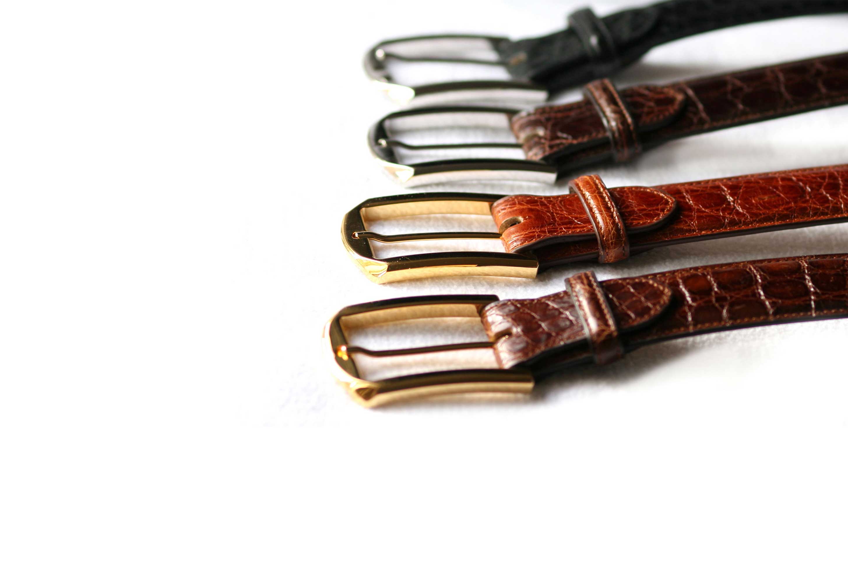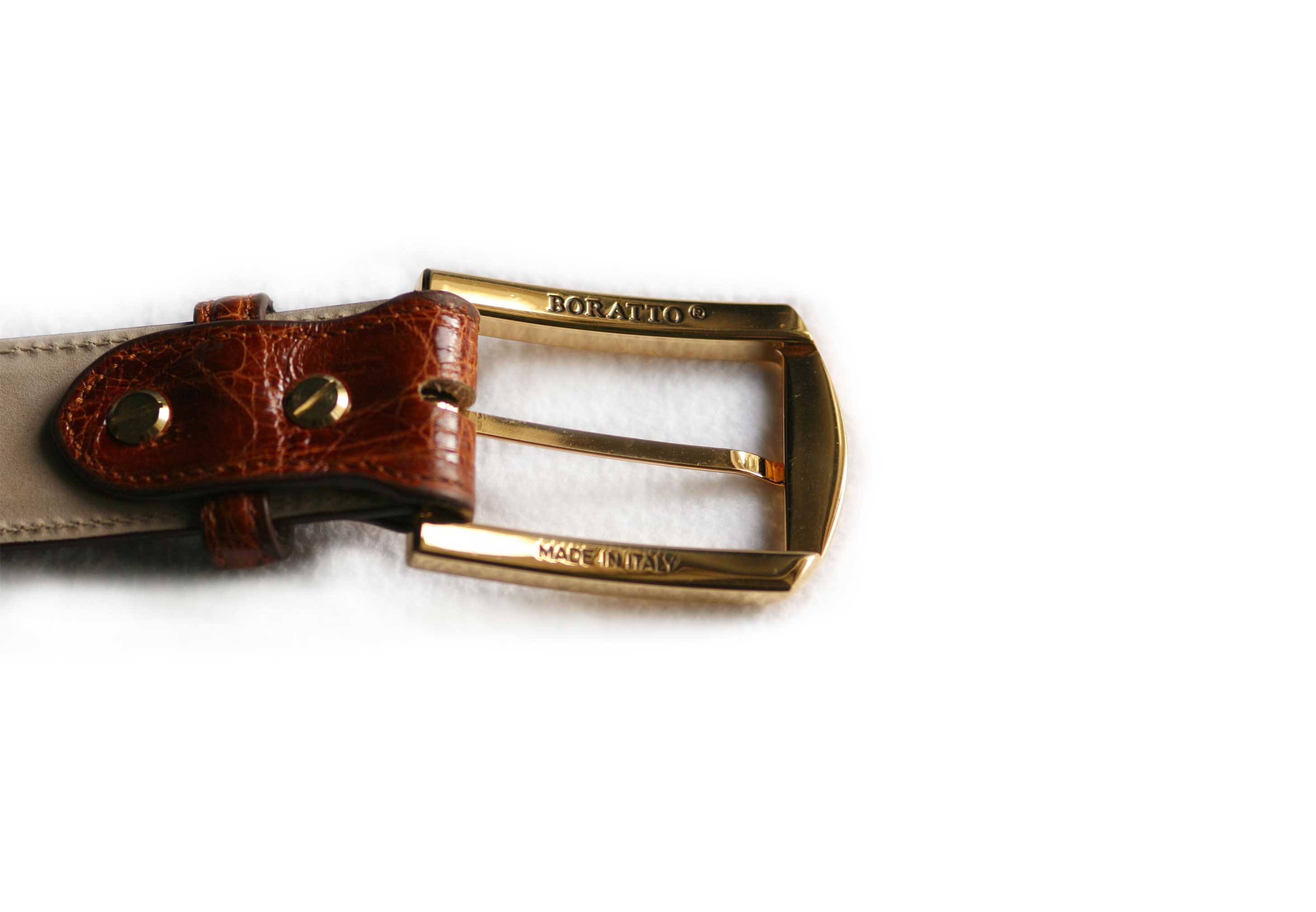 A staple accessory for the person of classic taste. Worn with tailored separates or casual denim , these handcrafted belts truly complete a look for any occasion. Made from genuine alligator front and smooth calfskin back these belts are smooth, sleek with clean lines. Fine gold tone or nickel buckle engraved with a subtle Boratto emblem on the inside. Available in matte or shiny to help age these belts beautifully. Adjustable fit.